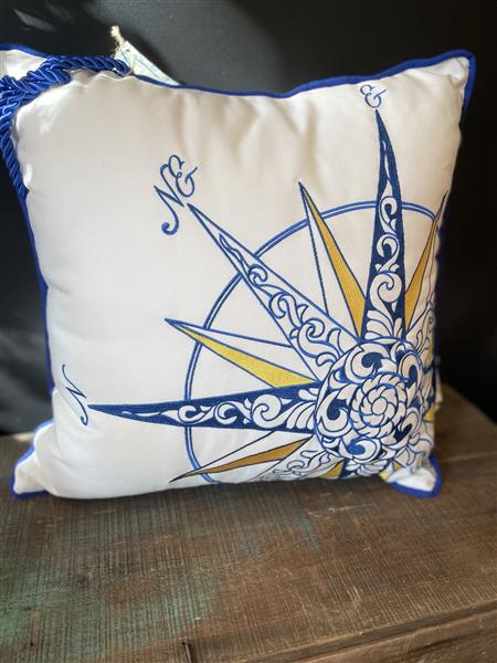 Brighten up your indoor/outdoor space with this canvas pillow. An artful coordinate star in Blue and Yellow while supplies last.
