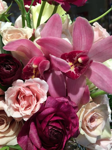 Roses and orchids in pinks and purples or in your color choice. The freshest flowers - some may be substituted based on season/availability.